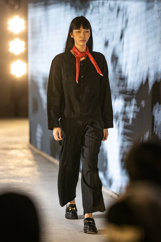 Koleksi ini terinspirasi dari busana kantor klasik dan diinterpretasikan ulang melalui penjahitan yang lebih lembut. Siluet terstruktur berpadu dengan garis lengkung dan simpul yang bersahaja, menciptakan karya yang terasa tenang sekaligus intim. Palet warna kalem dengan nuansa teduh menciptakan suasana. Sementara, mawar merah bersulam menghiasi busana, melambangkan ikatan tak kasat mata dan kepedulian yang abadi.